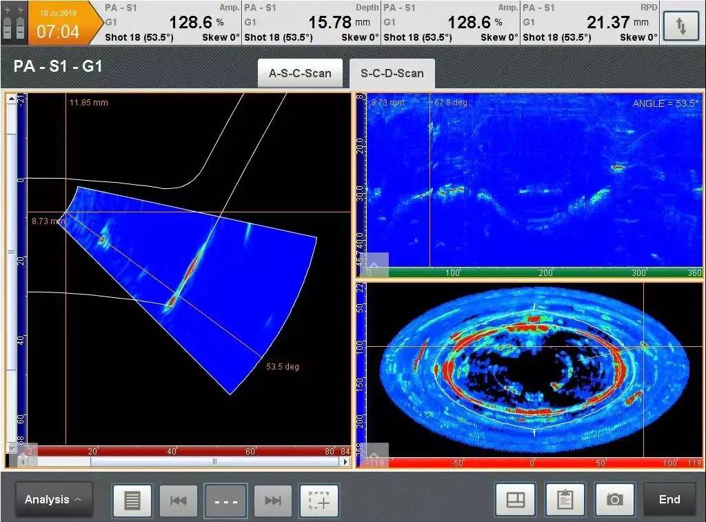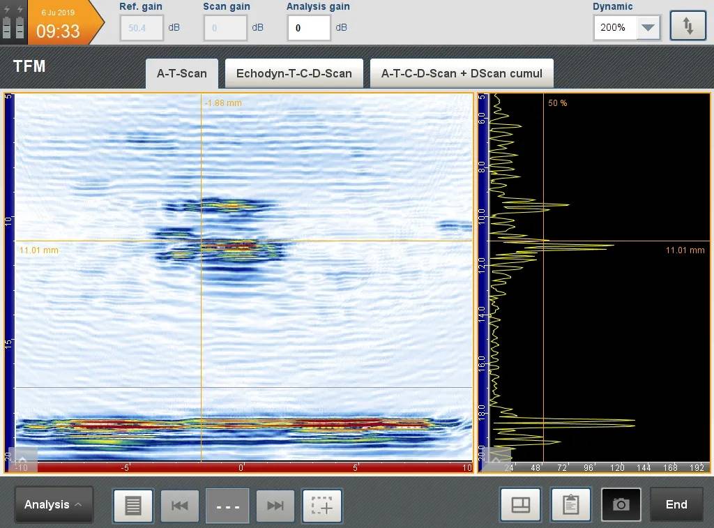 Compared to other forms of UT, PAUT has several advantages. PAUT can be conducted more quickly than other forms of UT, often within a fraction of a second. It can easily be used for repeat scans because it has a high degree of repeatability. By emitting beams of multiple different angles sequentially, PAUT is able to create detailed and accurate cross-sections of a part. It is also particularly useful in situations where there is less room for mechanical scanning because it’s able to sweep the beam without moving the probe.
